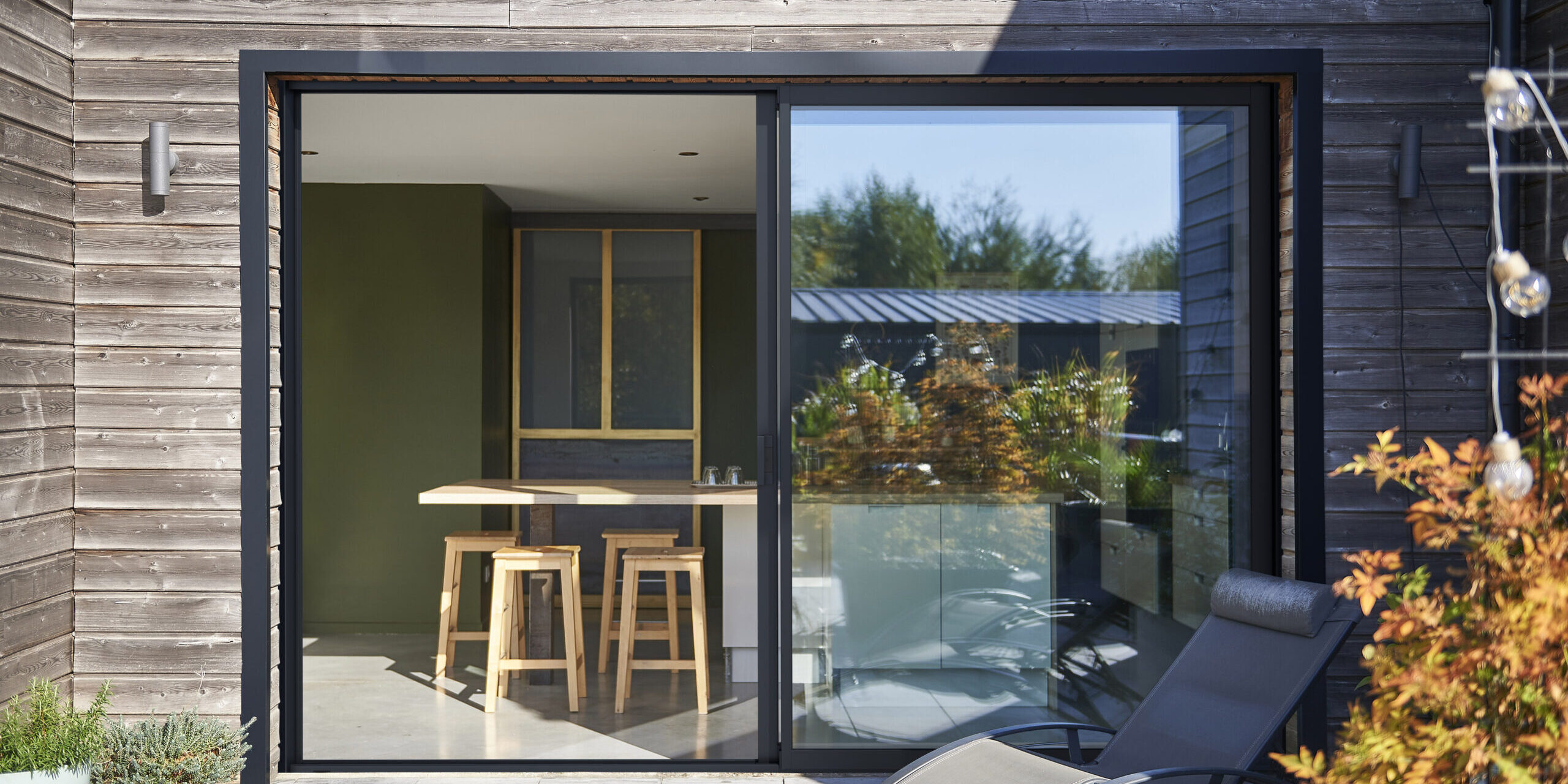 Ce type de menuiserie est particulièrement adapté aux villas contemporaines, aux extensions vitrées et aux séjours avec vue. Elle offre un véritable effet « mur de verre », renforçant la sensation d’espace et la connexion avec l’extérieur.